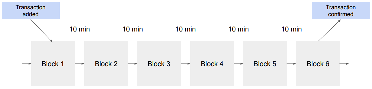 Once a transaction is made, it is added to the “mempool”, which is a sort of queue while pending the creation of a new and empty block. In order to be confirmed, the transaction needs to be added to a block of the blockchain through a process called “mining”. “Bitcoin miners” choose which transactions from the “mempool” to include in the next block, based on several factors including notably the transaction fees paid. As a new block takes approximately 10 minutes to be created.