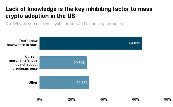 The majority of non-digital-currencies respondents (64%) cited a lack of knowledge, presenting strong potential for increasing cryptocurrency adoption with proper channelized education and awareness.