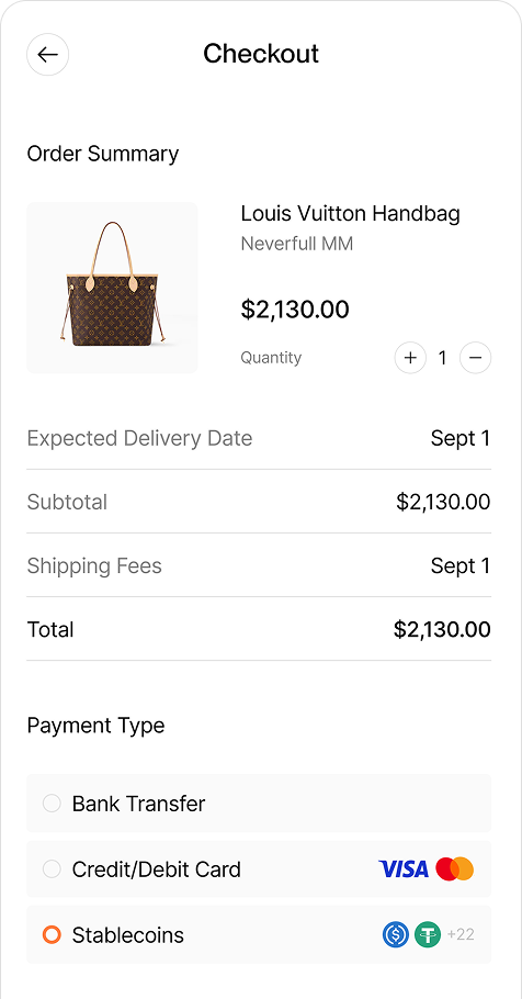 Process stablecoin payouts directly on the Triple-A merchant dashboard.
