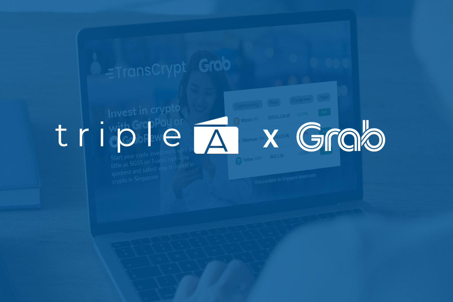 Triple-A, a leading digital currencies payments provider, partners with Grab to enable digital currencies investing for TransCrypt users with their GrabPay in Singapore. The collaboration allows users to buy digital currencies via GrabPay through TransCrypt (a Triple-A brand).